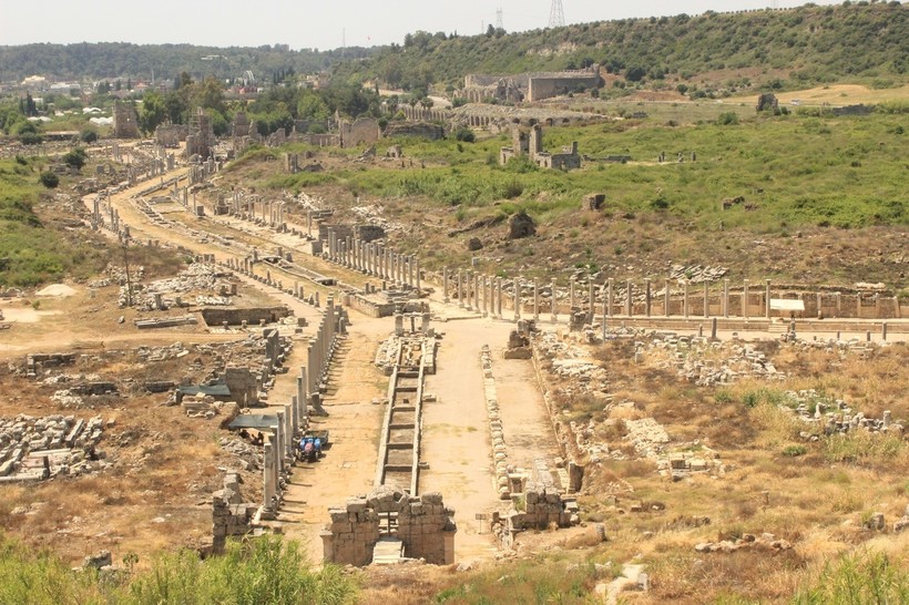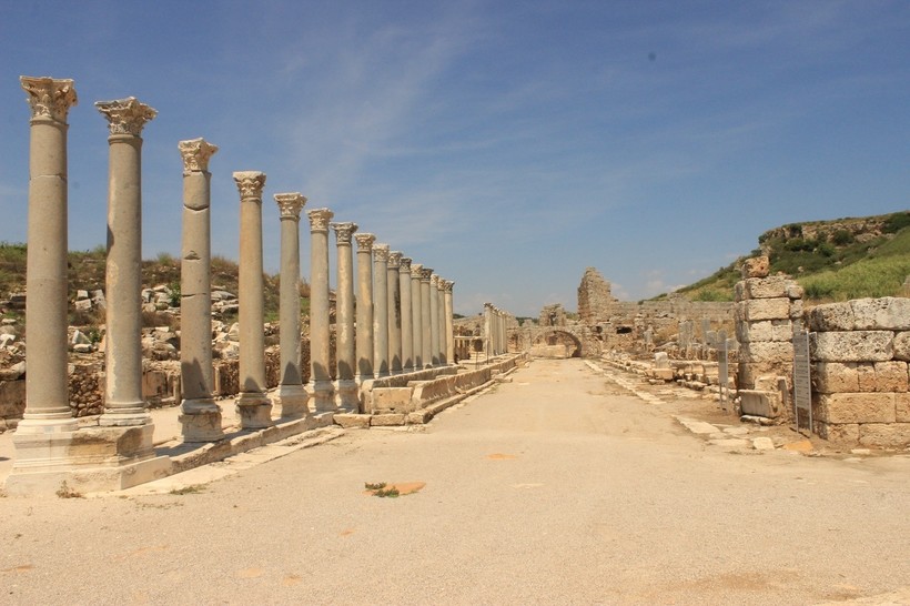 Частью моей личной анталийской сокровищницы стал античный город Перге. И его основным отличием от остальных древних поселений Малой Азии является наличие крупнейшего стадиона и античного театра. Когда-то он являлся столицей государства Памфилии, и по легенде был основан оракулом и прорицателем Калхасом, хотя в летописях данное место упоминается еще в 15 веке до н.э. Честно говоря голова идет кругом от таких далеких дат, особенно когда прогуливаешься по античным улочкам города.