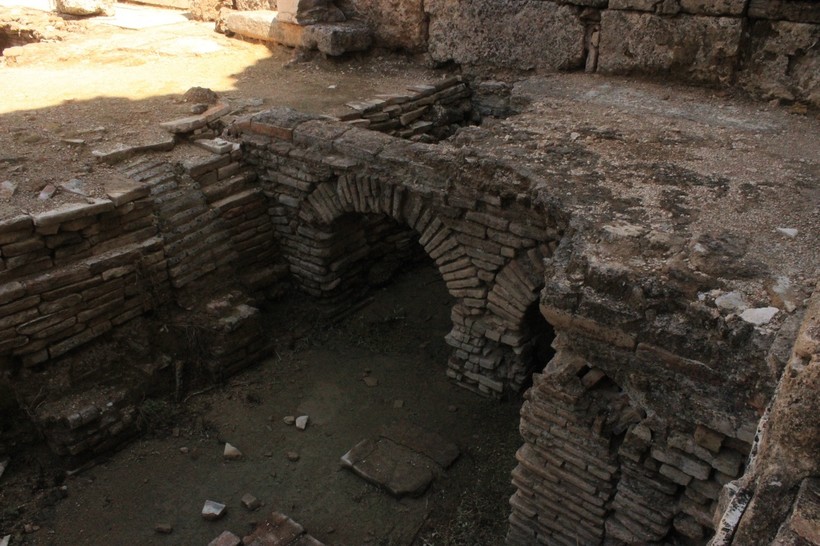В стародавние времена в бани ходили дабы отдохнуть от рабочего стресса, поболтать, провести время с друзьями, а может и еще с кем. Внутри я нашла два бассейна и остатки оригинальной напольной мозаики. Под полом располагались печи, которые нагревали воду. Пар, проходящий в стены, нагревал помещения, создавая комфортную температуру. Так вот части этих печей тоже остались, можно даже спрыгнуть вниз и погулять под остатками каменного пола.