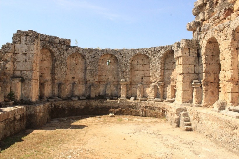 Напротив бань находится Агора или рыночная площадь. Обязательно зайдите в ее центр к фонтану, ибо в его каменной кладке расположено множество древних водопроводных труб (кстати они пронизывали весь город снабжая здания водой, в стенах терм тоже есть трубы). На сегодня от Агоры осталось внушительное количество колонн и разрушенные складские помещения. Общественные туалеты к сожалению не сохранились.