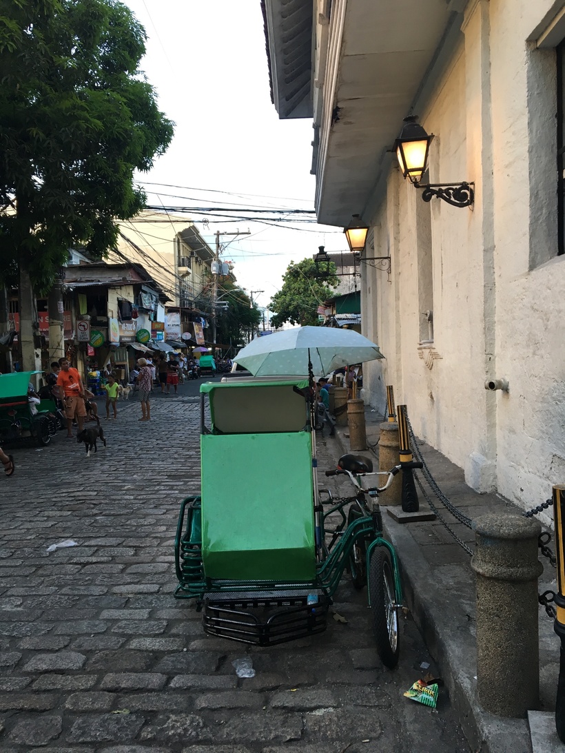 Парковки есть, но они всегда заполнены. Мы оставили машину рядом с Casa Manila (это бесплатно, если вы посещаете музей), а потом просто взяли трайсикл, чтобы больше не думать, где найти место, и заодно послушать экскурсовода.