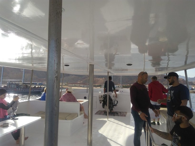 Когда мы отошли от берега, нас собрали наверху и предупредили, что сейчас будет инструктаж на трех языках. На русском, английском и арабском. Уверена, если бы у нас ехали итальянцы и немцы, они услышали бы инструктаж на своем языке тоже. Работающие в Шарм-эль-Шейхе сносно говорят на многих языках.