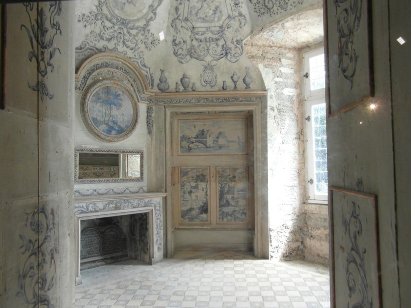 И, конечно, было очень интересно заглянуть в ту часть здания, которая открыта для посещения, и посмотреть на исторические комнаты. Что-то там отреставрировано, что-то нет. В неотреставрированных комнатах, конечно, становится грустно, потому что состояние не очень хорошее, что для Нормандии нетипично. Обычно французы в очень приличном состоянии поддерживают свои исторические объекты. Но тут... то ли замок в частном владении до сих пор, то ли государство до него не добралось, я не знаю. В некоторых комнатах впечатление, конечно, было не очень.