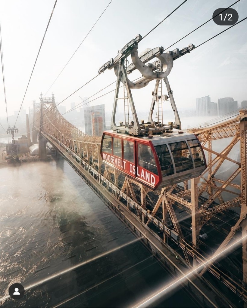 Канатную дорогу на Рузвельт Айленд я впервые увидела в рекомендациях инстаграма, и мне безумно понравилась фотография - вид на Манхэттен, мост и красная кабинка. Это выглядело так красиво, что мне тоже захотелось прокатиться по канатной дороге и сделать почти такую же фотографию. Я уже представляла, что в своем кадре сделаю черно-белый фон и ярко красную кабинку. Да у меня была идея фикс такой серии фотографии из Нью-Йорка - желтое такси и красная кабинка канатной дороги.