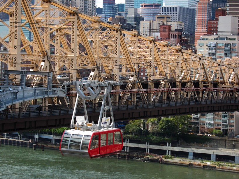 Канатная дорога соединяет Манхэттен и Рузвельт Айленд. Над самим островом Рузвельта проходит мост Куинсборо, который соединяет Манхэттен и Лонг-Айленд. Но прямого выхода на Рузвельт Айленд нет. Раньше был трамвай, который вез по мосту до середины, а потом люди спускались на лифте. Но потом решили его убрать и открыть на острове станцию метро, пока ее строили параллельно мосту Киунсборо запустили канатную дорогу, чтобы люди могли добраться до дома.