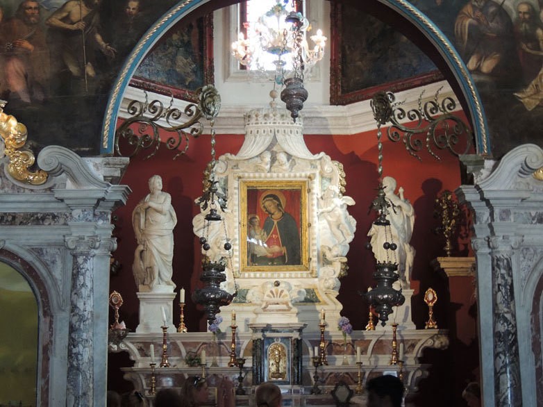Именно в этой Церкви находится одноименная икона Божье матери, которая является покровительницей всех моряков не только в Перасте, всей Черногории, но и во всем мире.