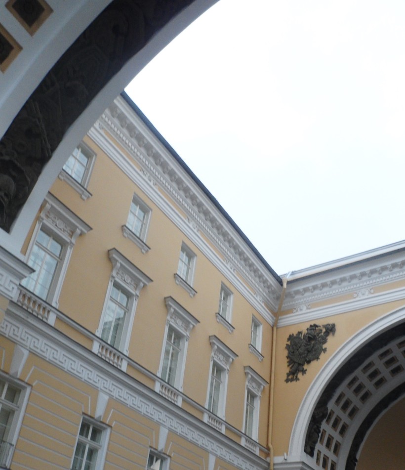 Смотреть на этот великолепнейший архитектурный ансамбль Дворцовой площади я могу, наверное, бесконечно. Не зря в моем фотоархиве сотни снимков, сделанных при разном освещении и в разную погоду. Эту красоту хочется вообще увезти с собой, не говоря уже о том, чтобы сфотографировать, хоть в памяти камеры уже есть достаточно таких файлов. Я жалею только о том, что не уделила должное внимание коллекциям, хранящимся в стенах Главного штаба. Просто потому что мы с подругой повторили ошибку сотни тысяч других путешественников: отправились в Главный штаб через пару минут после выхода из Зимнего Дворца. Были уставшие и очень торопились в Мариинку. Лучше на посещение Главного штаба выделить отдельный день или хотя бы просто зайти сюда с утра на пару часов.