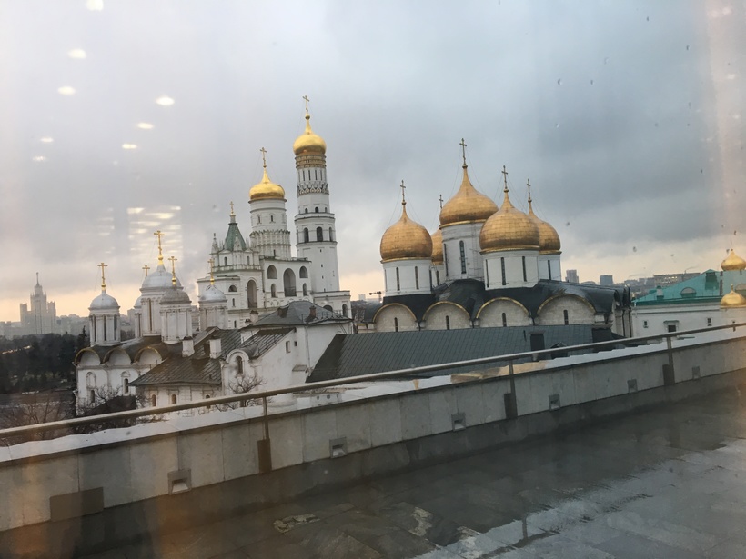 Кремлевский дворец очень большой, я поняла это сразу, когда пришла в первый раз. Наличие экскалаторов, перевозящих людей по нескольким этажам, огромные широкие лестницы, гардеробы, туалеты, фойе, буфеты - всего здесь просто очень много. Это очень удобно, нигде нет очередей. Кремлевский буфет, обязательно стоит посетить, даже если и ты не собираешься кушать. Виды из огромных стеклянных стен на внутренние постройки Кремля просто впечатляющие. И ведь посмотреть можно только здесь, даже если ты будешь ходить по территории в рамках экскурсии, ты увидаешь все с земли, а не с высоты четвёртого этажа.