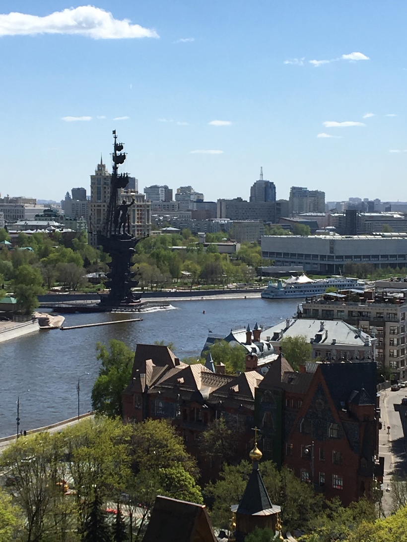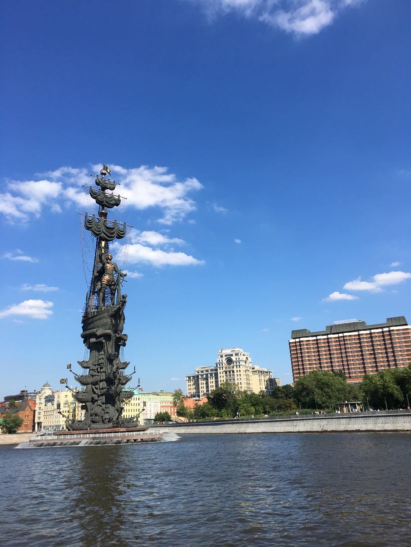 Как все таки интересно выглядет город с этой скульптурой. Конечно, как и любой наверно, не стандартный объект, статуя выдержала много критики. Но мне кажется, что она уникальна в своём роде и делает Москву другой. Как в своё время статуя "Рабочий и Колхозница". На реке мы подплыли к скульптуре совсем близко и даже немного остановились, очень было интересно все рассмотреть.