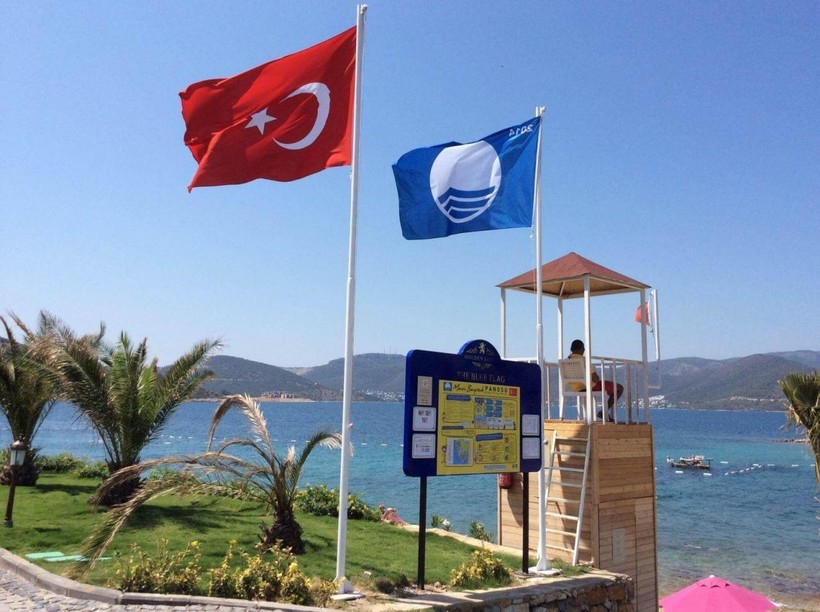 Это международная награда пляжам, которая присваивается за соответствие определенных категорий. Турция вообще одна из тех стран, где почти в каждом курортном городе есть такие пляжи.