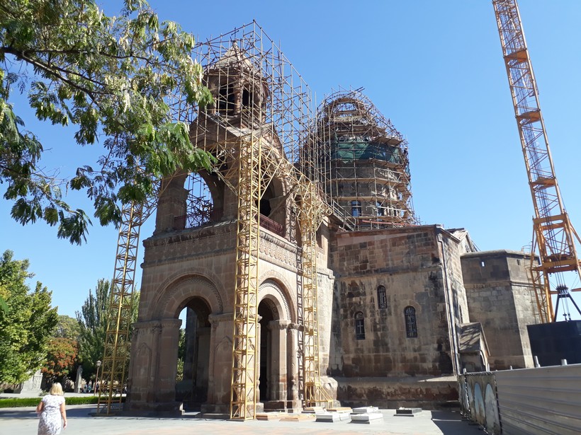 Из минусов могут отметить только то, что в момент моего посещения в Эчмиадзинском храме велись ремонтные работы, и если леса на внешних фасадах не могли скрыть красоту древней архитектуры, то внутри большая часть храма, к сожалению, была огорожена и закрыта для осмотра