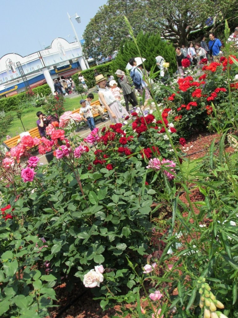 В Иокогаме я оказалась в теплый солнечный день, поэтому прогулка по парку вышла замечательная. По сути парк представляет собой узкую полоску зелени, тянущуюся вдоль набережной, но таких великолепных цветников и такого многообразия красок я не видела никогда в жизни.