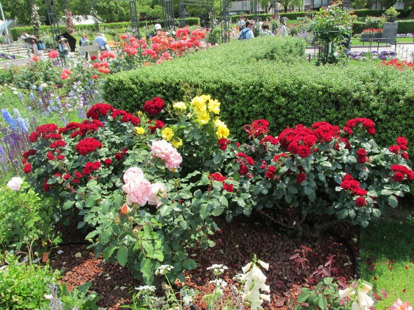 Обилие цветов поражает, на сколько я знаю, клумбы регулярно засаживают по новой, меняя их облик до неузнаваемости. На месте остаются только роскошные многолетние розы, обвивающие решетки и специальные опоры. Несмотря на все это у парка сохраняется дикий вид в самом хорошем смысле этого слова. Он очень ухоженный и в то же время кажется, что все растения растут сами по себе так, как им вздумается.