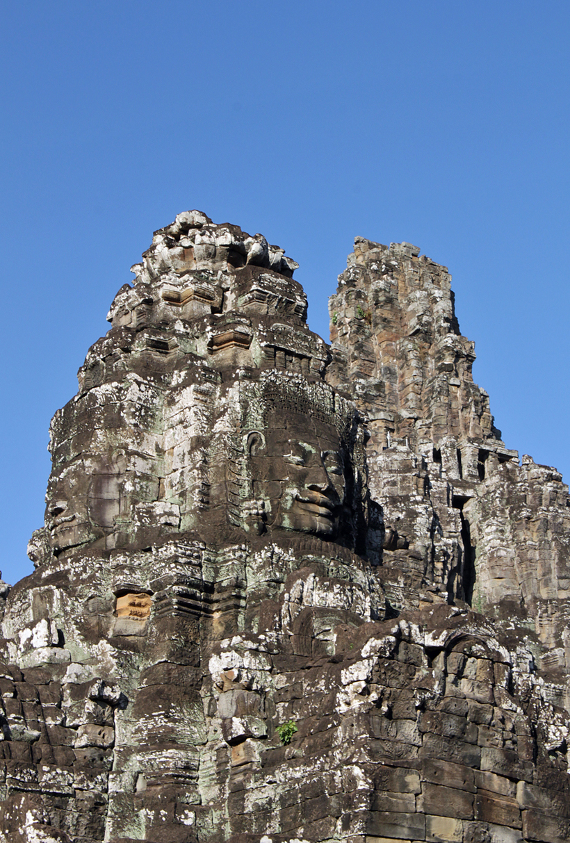Все лица вроде бы похожи (считается, что они изображают Джaявapмaнa VII, по другой версии они олицетворяют Будду), но при внимательном рассмотрении находишь в них индивидуальные черты. В зависимости от угла, под которым на них смотришь, а также от освещения, (а возможно, и от вашего настроения!) каменные изваяния могут выражать любые эмоции – радости, грусть, страх, сострадание, покой и умиротворение.