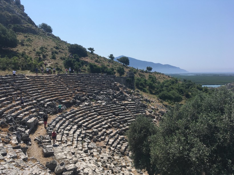 На лодке мы плыли в город Дальян, маленький и весьма колоритный. Там спокойно. Там другая Турция. А еще по дороге мы заплывали смотреть развалины старого города.