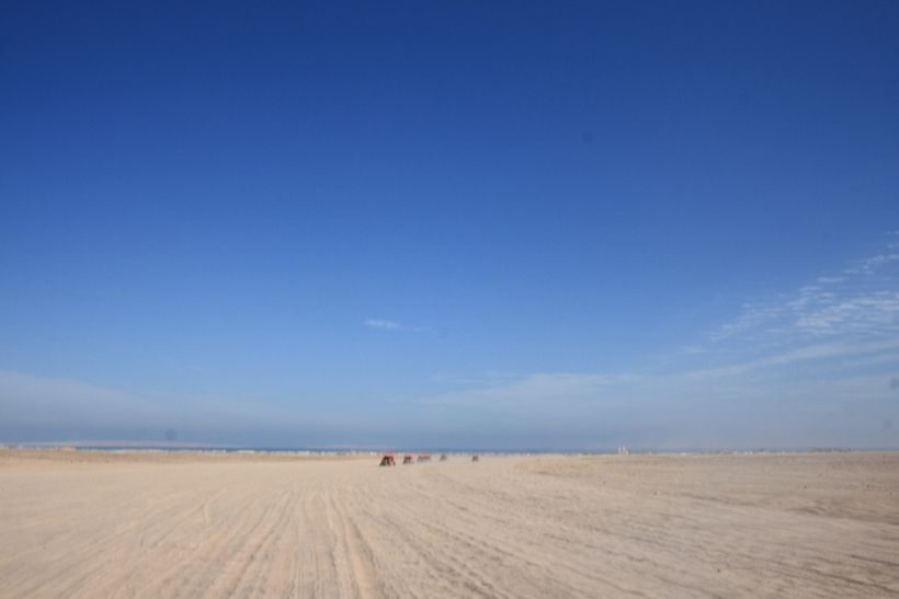 Цвет Аравийской пустыни - от серого до темно-красного. Меня по началу немного пугал этот пейзаж - сплошной белесый песок, переходящий в морскую полоску, за которой виднелись горы, на фоне голубого бескрайнего неба.
