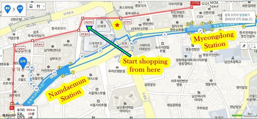 До торгового района Сеула можно добраться несколькими способами, и самый простой, пожалуй, - отправиться на одноименную станцию метро Myeong-dong и свернуть на 5 – 8 выходы. Мы вышли из метро, и впереди сразу оказались огромные торговые центры, а чуть левее тянулась широкая пешая улица с миллионом вывесок, стало понятно - мы в нужном месте! Можно бы дойти и от станций Euljiro 1(il)-ga, Euljiro 3 – ga, но только не все среди нашей компании были любителями поблуждать лишние 15 минут.
