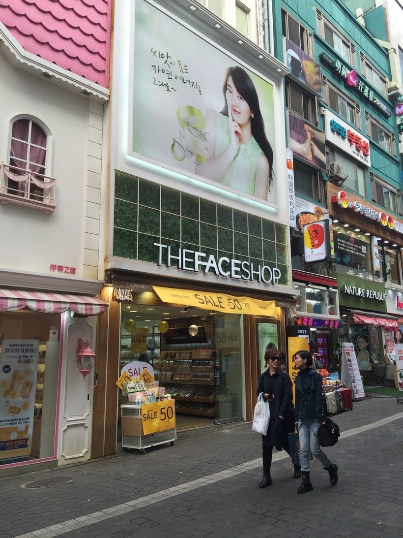 Во всем мире знают о корейской косметике, уже даже в России повсеместно заполняют ею полки магазинов. Так вот на Мендоне, кажется, есть любая косметика, абсолютно всех корейских брендов. Подчеркну, что здесь мы не нашли европейских марок, но все-таки приехали в Корею и хотели удивить себя тинтами, кушонами и прочей бьюти- атрибутикой. Нас то и дело заманивали в магазины, предлагая, как бы бесплатно, взять маску, но как только мы клюнули, милая девочка тут же протянула корзинку и отказаться зайти в магазин было просто невозможно. По своему опыту скажу, что там хочется купить все и сразу, а миллион акций, подарков, которые обязательно идут к покупке, только усиливают желание добровольно разориться.