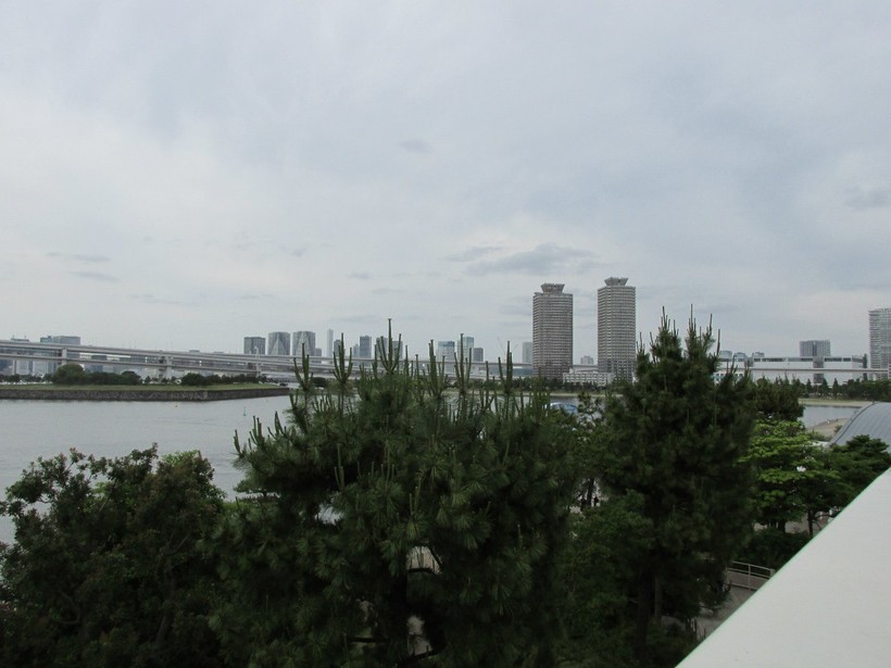 Так вот, конечный пункт их маршрута расположен именно в Приморском парке Одайбы: с одной стороны пляж и набережная, с другой - небольшая рощица хвойных деревьев и знаменитая копия Статуи Свободы. В сочетании с крутым видом на Радужный мост и небоскребы на другом берегу, создается впечатление, что и не в Японию вовсе попал: