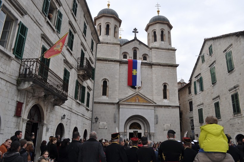 Особое внимание привлекает алтарь. Он вырезан из красного мрамора. В основном там изображены сцены из жизни Святого Трифона. Пока мы изучали все нюансы изображений, к нам подошел местный батюшка, представился и спросил, откуда мы. Узнав, что мы из России, очень этому обрадовался. Сказал, что хорошо знаком с нашим патриархом. А после любезно предложил провести нам экскурсию по Старому городу. Но мы вынуждены были отказаться, потому что были ограничены во времени и нам нужно было смотреть еще остальные города Бока-Которской бухты. Но нам было очень приятно встретить такое радушие со стороны местного жителя, да еще и батюшки.