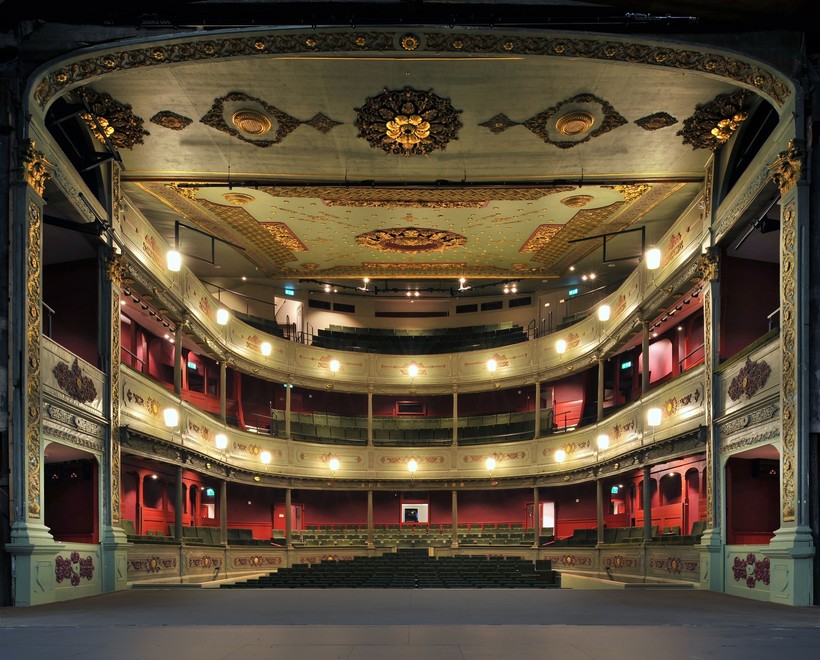 В общем, надела каблуки и платье, пошла. На входе – никакой толкотни, сам театр выглядел очень уютным. Он довольно старый, и это чувствуется. Есть буфет, где наливают шампанское и дают какие-то закуски; я перед первым актом не решилась, подумала, что если меня потрясет спектакль, то я заполирую впечатления в антракте. И таки да, пришлось пить шампанское, очень сильные были эмоции.