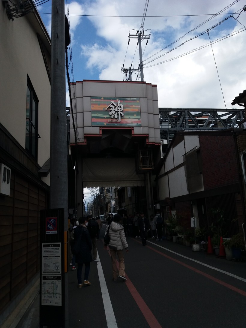 Территория "рынка" перегружена, там очень много людей (это прямо киотский собрат (по степени ужасающей загруженности) улицы Такешита на Харадзюку и торговой улицы около храма Сэнсодзи в Токио), в буквальном смысле приходится идти паровозиком за теми, кто впереди и высоко-далеко глядеть, чтобы посмотреть товары в лавках.