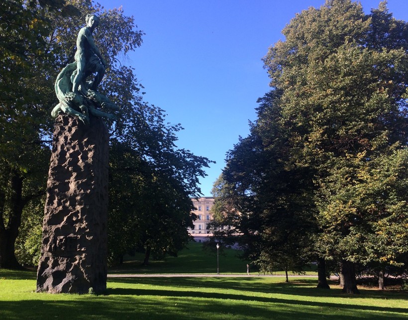 Украшают парк несколько статуй. Мне запомнилась скульптура королевы Мод. Королева Норвегии, чье имя носят ряд географических объектов в Антарктиде. Есть еще фигуры других выдающихся норвежцев. Например, изваяние норвежского математика, Нильса Хенрика Абеля, который прочно ассоциируется с интегралами.