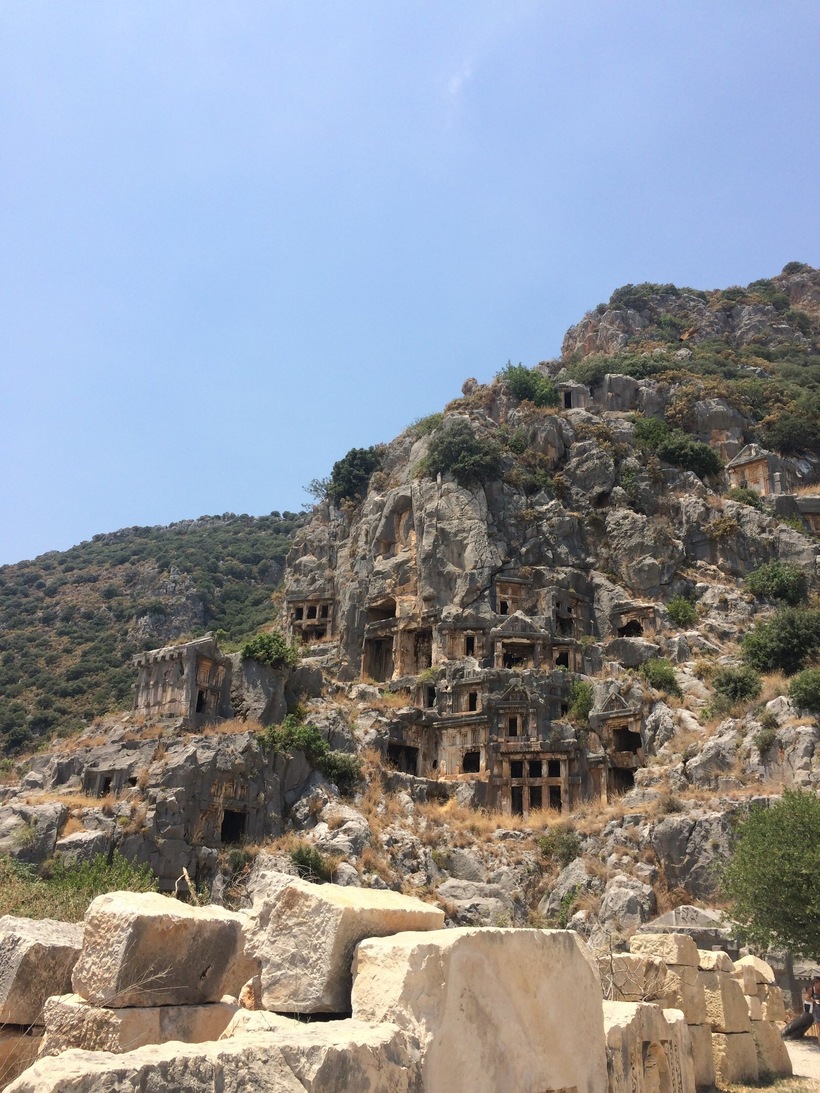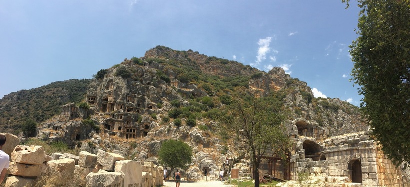 Экскурсионный автобус привёз нас к трём чудесным историческим памятникам: церкви святого Николая-чудотворца, древнему амфитеатру и наскальным гробницам. Каждое из этого- просто замечательное зрелище! Теперь подробнее остановимся на самих гробницах.