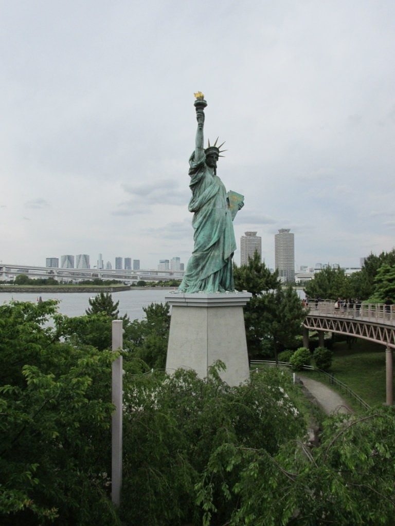 Статуя - точная копия знаменитого монумента, установленного в Нью Йорке, только уменьшенная в 4 раза. Интересно, то сами японцы ассоциируют статую скорее с Францией. Впрочем, своя Эйфелева башня у них уже есть (даже чуть повыше), так что и Лувр не за горами.