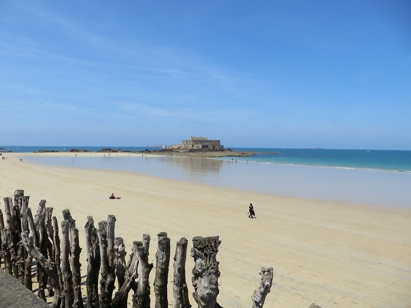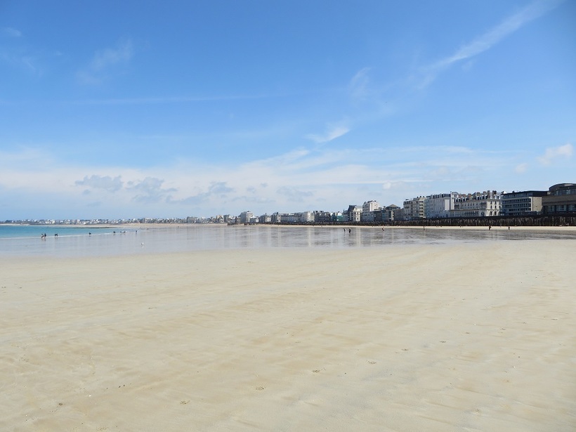 Лё Сийон (Le Sillon) – это один из самых посещаемых фрагментов Большого пляжа (La Grande Plage) в Сен-Мало. Он понравился мне именно тем, что в отличие от других здесь нет большой толпы туристов, нет лодок и катеров – все они в центральной и западной части города.