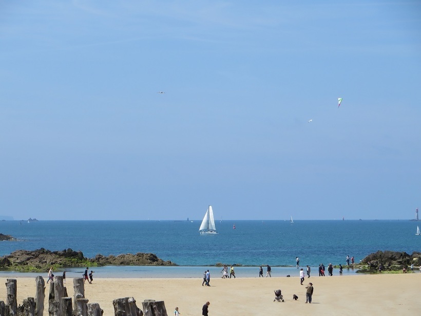 Местные жители запускают бумажных змеев и играют в волейбол. Мы поскромничали, но если вы путешествуете группой, то присоединяйтесь. Однако, большинство посетителей пляжа использует его как прогулочный променад. Кстати, во время отлива песок настолько плотный, что можно спокойно кататься на велосипеде или гулять с коляской. Что касается еды, то можно устроить пикник прямо на пляже, но вверху на набережной Сен-Мало много кафе и ресторанов, где можно поесть гораздо вкуснее.