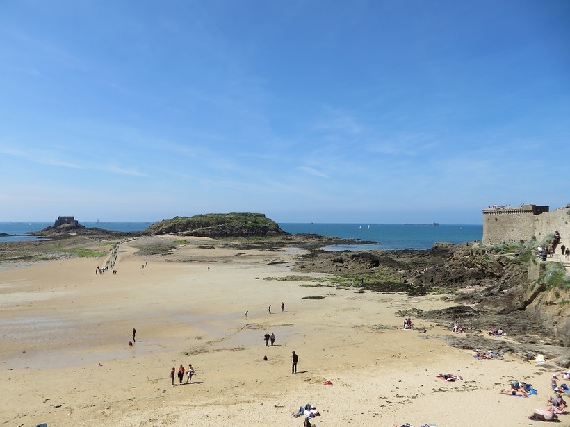 В Сен-Мало мы приехали ради посещения достопримечательностей, но увидев широкие песчаные пляжи, решили попробовать и “пассивный” отдых. Тем более, что началась серьезная жара и солнцепек, не воспользоваться которыми было бы грех. Поверьте, Нормандия довольно суровое место, где поймать теплое времячко для купания и приема воздушных ванн – довольно большая удача.