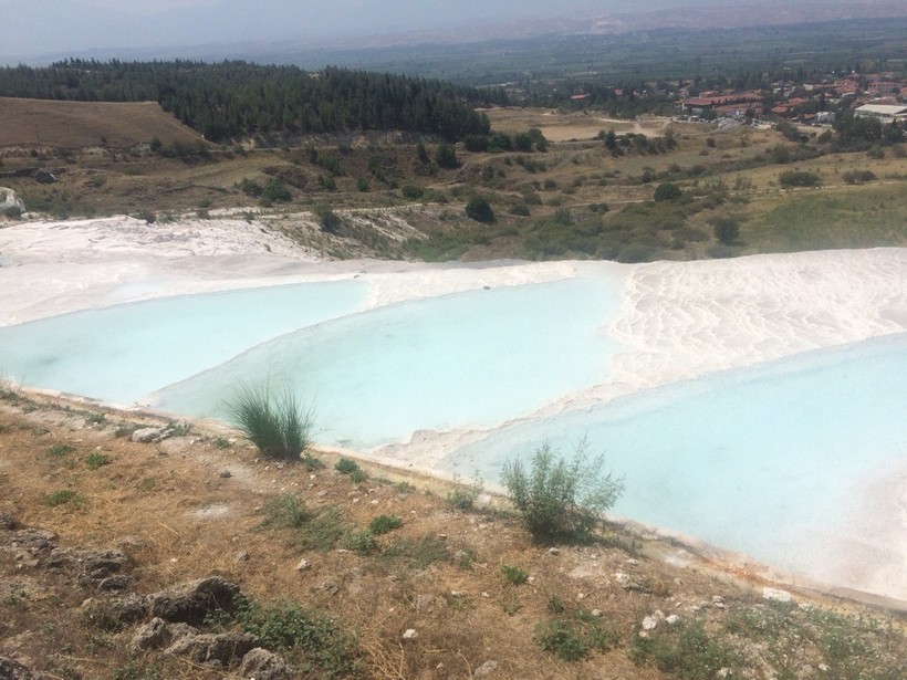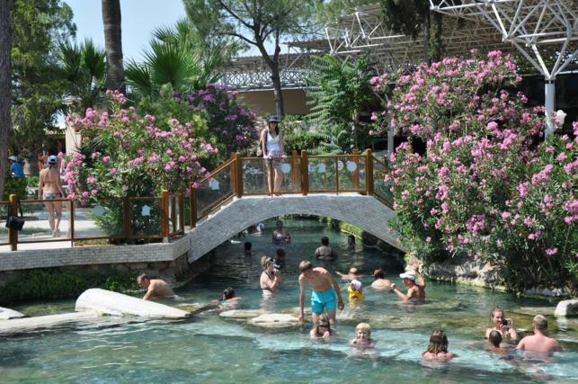Минусов гораздо больше: доплаты за посещение бассейна Клеопатры, отсутствие экскурсионной программы – туристы просто бродят по комплексу, не понимая, чему стоит уделить особое внимание, термальные источники грязные, нет никакого контроля количества туристов, из-за чего в бассейнах не протолкнуться.