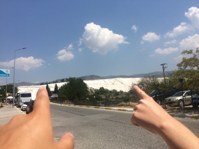 Археологическо-природный памятник Гиераполис- Памуккале находится вдалеке от основных туристических мест(побережья), поэтому большинство туристов заказывают экскурсию на автобусе. Мы добирались до Памуккале автостопом, что позволило нам избежать многих трудностей, с которыми сталкиваются экскурсионные группы.