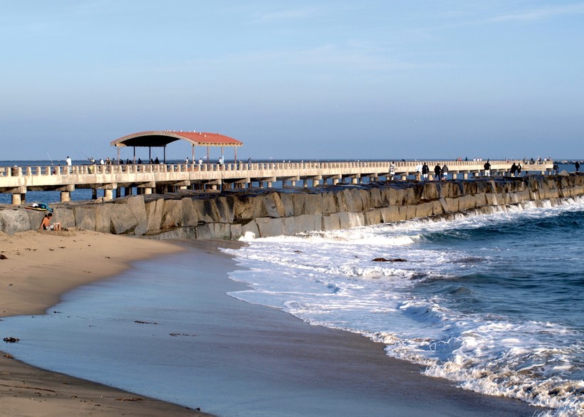 - Минут за 20 от Колокола можно дойти до местного пирса. Вообще, пирсы в прибрежных калифорнийских городках – отнюдь не редкость, в большинстве пляжных городков они есть. Где-то пирс – это целый парк аттракционов, как в Санта-Монике. Где-то – просто «пешеходная дорожка» над океаном, как на Сил-Биче. Здесь, в Сан-Педро, пирс – это рыбацкое местечко. Пахнет тут не только океаном, но и только что пойманной рыбой, сидят мужчины разных возрастов с удочками. Лично мне как-то приятно и умиротворённо ощущалось в этом месте. Кстати, рядом с пирсом находится небольшой маяк. К сожалению, когда я здесь была (март 2019 года), подойти к нему было невозможно (видимо, из-за реконструкции ведущей к нему дороги). Но, надеюсь, в скором времени это станет возможным.