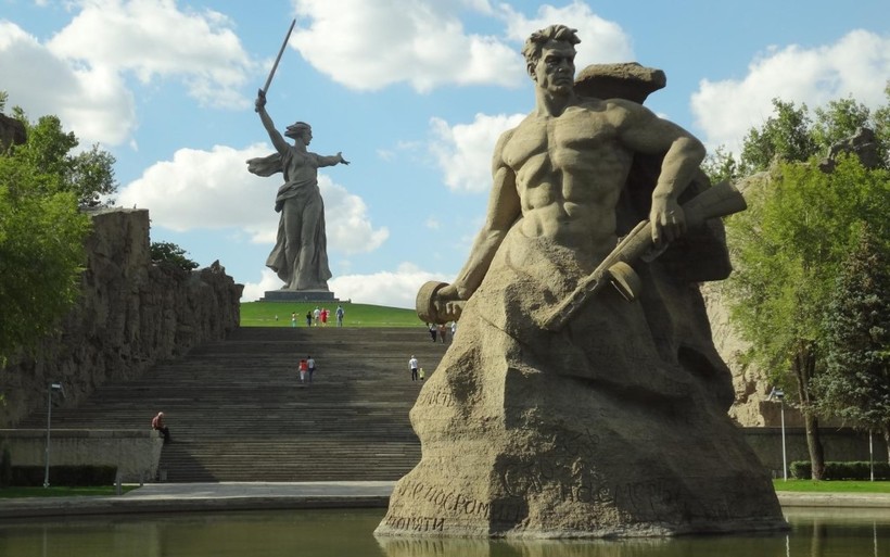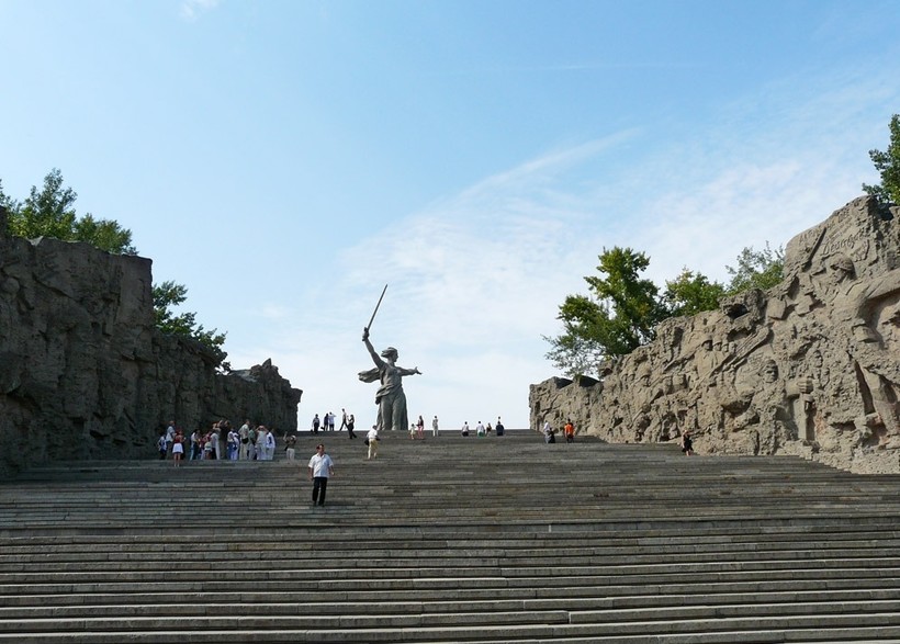 К фигуре Родины-матери ведет широкая и высокая лестница, которая насчитывает 200 ступеней и это число далеко не случайно. Оно равно количеству дней, сколько длилась оборона Сталинграда. Символизм в этом мемориальном комплексе во всем.