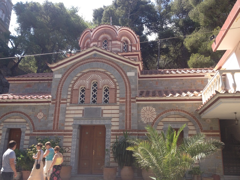 Мы брали в аренду автомобиль и в рамках поездки на Плато Лассити было запланировано несколько остановок. Наш маршрут спланировала наша гид и с трудом теперь воспроизведу, как мы приехали к монастырю Керра-Кардиотисса. Но получилось это случайно. Мы проезжали мимо и не планировали заезжать именно сюда, но Монастырь отлично видно с дороги и нас заинтересовало, что же внутри. Решили сделать остановку и осмотреться, о чем в итоге не пожалели.