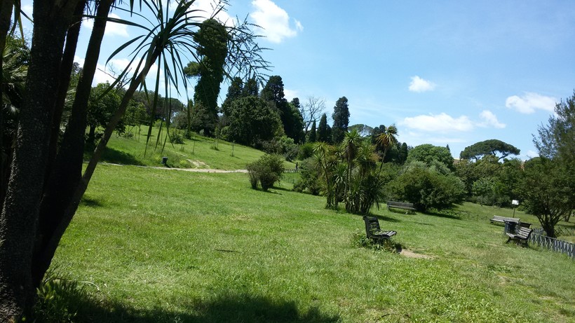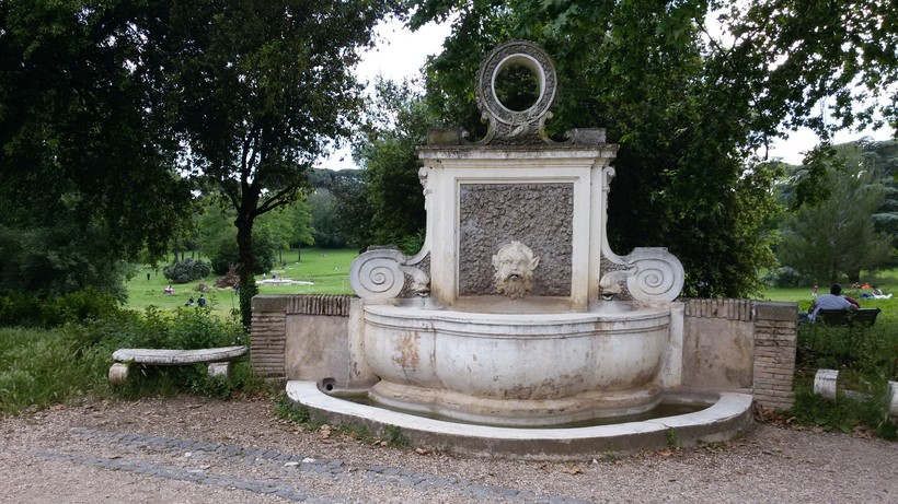 Удивительно, что эта большая зеленая зона находится в центре Рима. Гулять по ней можно часами. Немного наш Кисловодский парк напоминает, только нет здесь таких крутых спусков и подъемов, как в Кисловодске. Хотя местность тоже неровная, холмистая - расположена вилла у подножия холма Яникул, или, по-итальянски, Джаниколо. А еще вместо наших сосен - элегантные средиземноморские пиньи с высокими стволами и шаровидными макушками.