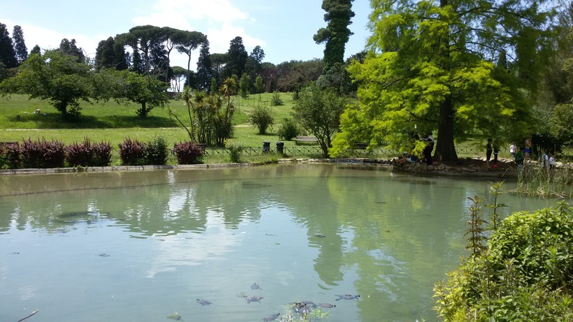 Так как парк огромный, обойти его весь за один день и увидеть все сразу вряд ли получится. Я была на вилле два раза. Первый раз, год назад, мы обнаружили большое озеро. В этот раз дорожки привели нас к другому озеру, поменьше. В нем плавали черепашки, вода, правда, илистая, на фото их не очень хорошо видно.
