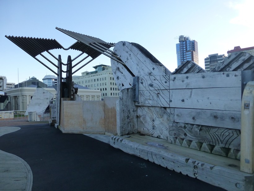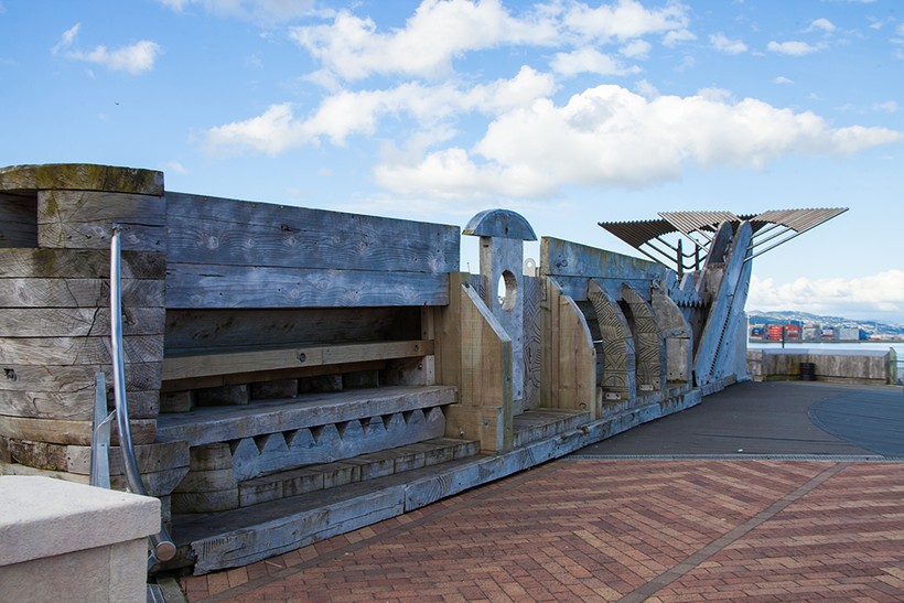 Мы ожидали, что возле порта, места по определению оживленного, будет толктись много народу. А мост-то совсем рядышком. Однако на нем никого не было. И знаете, это завораживало. Мы видели маорийские лодки в музее Те Папа, однако, естественно, доступ на них запрещен. А тут ты как будто оказываешься на этой лодке и сейчас куда-то поплывешь... или не поплывешь... в общем, ты точно движешься, хотя мост стоит на месте!