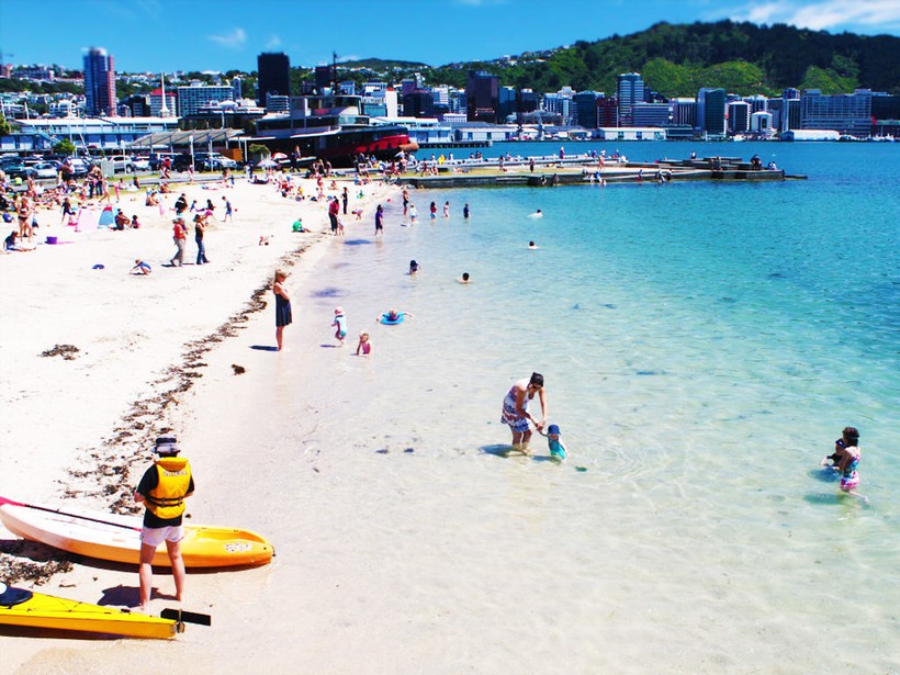 В Веллингтоне невозможно без океана. Водичка так к себе и манит, тем более в начале лета, тем более, когда она такого восхитительного цвета! Гуляя в гавани – это самый центр города – мы с подругой обратили внимание на чистоту воды, и не удивились, что здесь есть очень даже популярные городские пляжи. А почему бы и не купаться в черте города, когда можно?