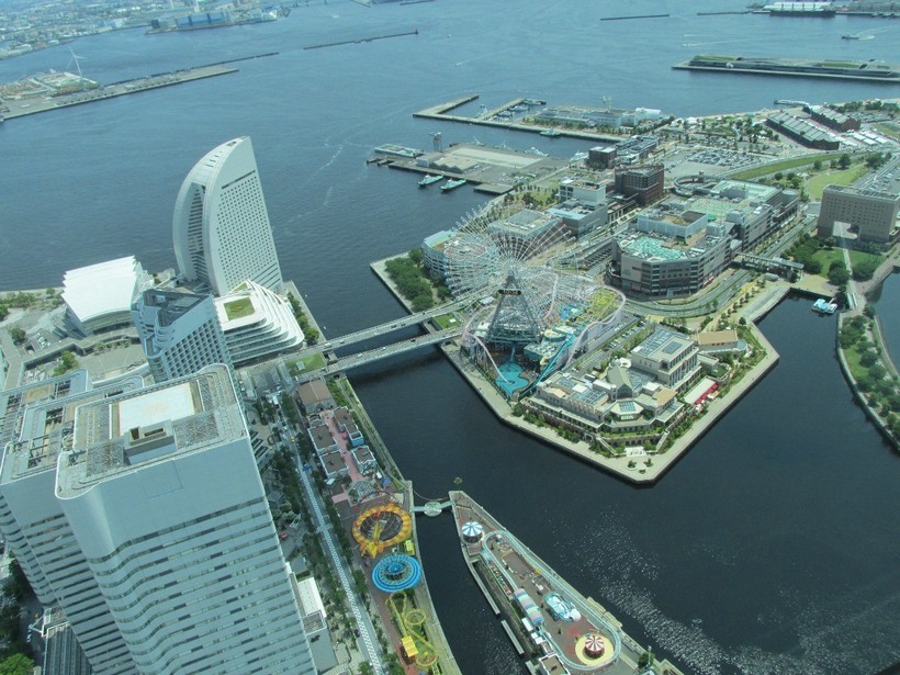 Поэтому в Иокогаме одним из первых пунктов культурной программы у нас стала обзорная площадка Скай Гарден (Sky Garden, Небесный Сад) в самом высоком небоскребе Лэндмарк (Landmark) в современном, можно даже сказать футуристическом районе Минато Мирай (Minato Mirai, Порт Будущего). Хороший вид открывается еще и с колеса обозрения, но все же это вещи несравнимые. Поэтому мы предпочти именно подняться на Скай Гарден.