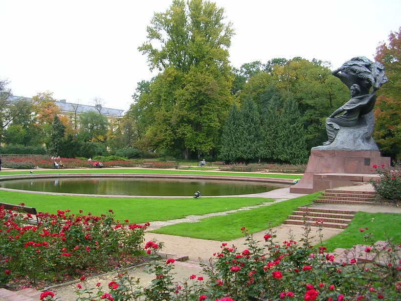 Вообще, я привыкла к тому, что памятники композиторам, в основном, такие строгие, классические. А здесь, гуляя по парку, кстати, одному из красивейших не только в Варшаве, но и во всей Польше, я увидела совсем не того Шопена, к которому привыкла. Картины и бюстики, изображающие композитора в музыкальной школе, где я имела честь учиться, изображали его совершенно другим.