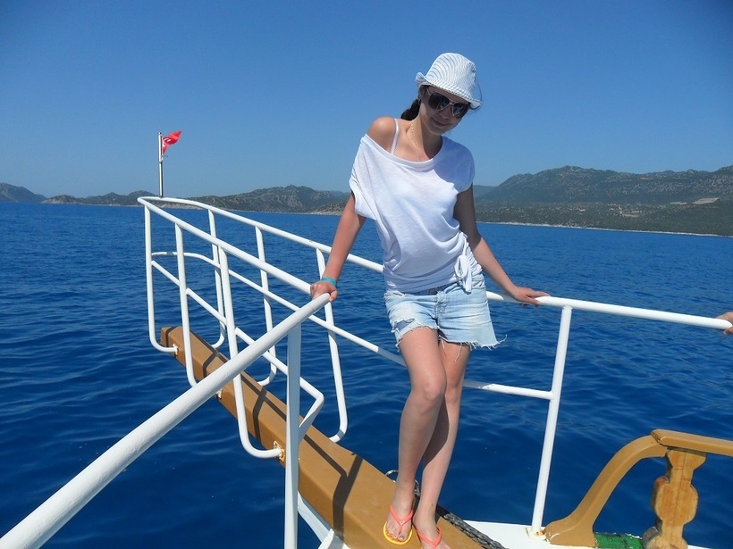 Во-первых, нас, конечно, впечатлила сама прогулка по Средиземному морю у берегов сказочной Турции. Небольшой корабль, чистая морская гладь, жаркое солнце и прохладный ветерок – что еще нужно для счастья? Ко всему прочему, с нами плавал профессиональный фотограф, который успел уловить пару удачных кадров. Фотографии по завершению прогулки были уже оформлены в сувенирные тарелочки, и их можно было купить. Можно было и не покупать – никто не принуждал. Мы купили.