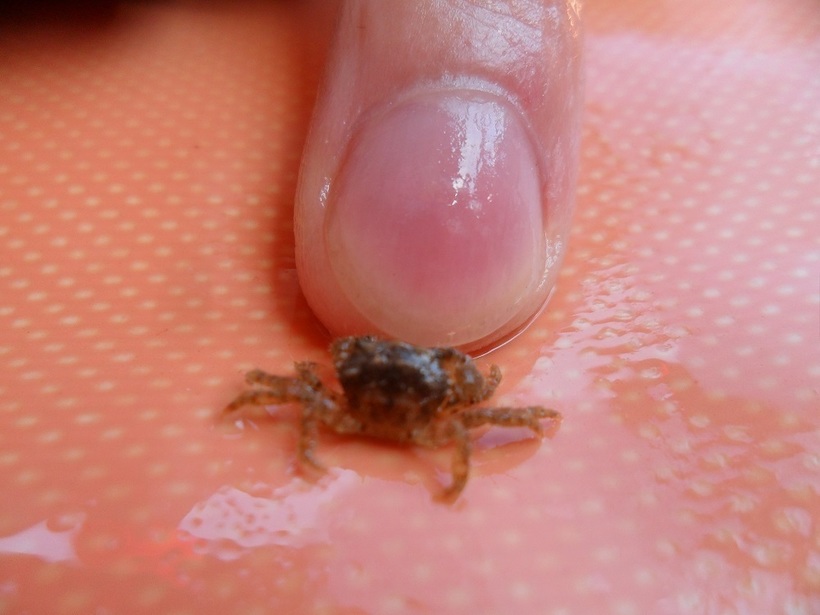 Во время морского купания, один из наших знакомых доплыл до Кекова и даже нашел на берегу совсем маленького краба – размером буквально с половину ноготка – я впервые такого видела.