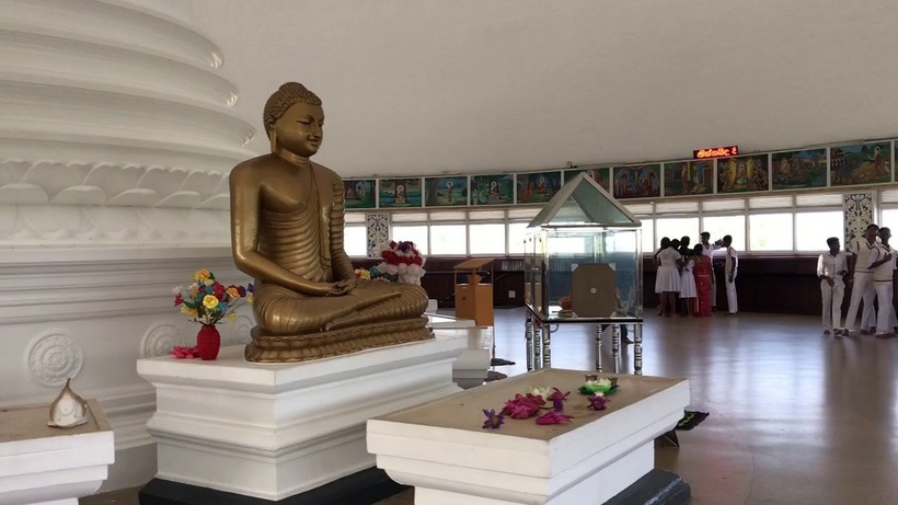 - Древность. Как мы узнали из описания на плакате рядом с храмом, он был построен в 1974 году. Процесс строительства занял примерно 10 лет. Но это не просто новодел. В современную постройку тщательно вписаны остатки предыдущего, разрушенного голландцами и португальцами, древнего храма 2 века нашей эры. Изначально здесь был посажен один из саженцев священного дерева Бодхи, рядом с которым и в честь которого был возведен храм.