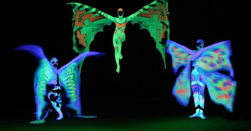 Черный театр - это такая разновидность театрального искусства, когда все-все черное ( в случае театра Srnec используется черный бархат, так как он лучше всего поглощает свет), а нужные предметы, или актеры выделяются цветом, светом, прожекторами, создавая своеобразную оптическую иллюзию. Звуковое сопровождение постановок - это музыка. Слова в Черном театре не используются. Вся суть представления в том, чтобы передать зерно постановки при помощи света и цвета. но я вас уверяю, все понятно и без слов. Музыка - это замечательный способ выразить и описать эмоции, чувства, состояния. А цвет и свет отменно передают динамику.
