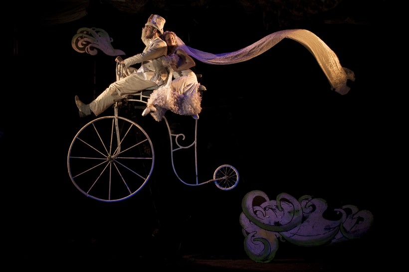 Но больше всего меня поразила все-таки игра света и цветовых решений. Вот вы представляете - сцена - это сплошная чернота, никаких фоновых декораций и прочих отвлекающих моментов. И в это время на сцене происходят настоящие чудеса, неодушевленные предметы двигаются, взаимодействуют с актерами, и даже с залом. Конечно, здесь работают люди и используются элементы иллюзии, но мне, как зрителю, вся техническая подоплека была неважна. Я видела то, что видела и была полностью поглощена происходящим на сцене.