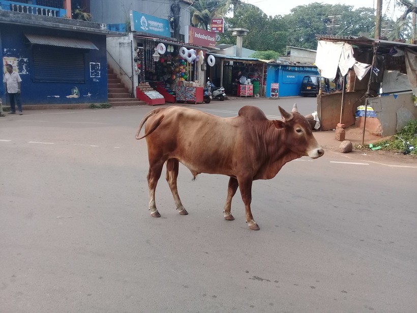 А с первыми лучами солнца на пляже можно встретить больше коров, чем людей. Зрелище по своему очень необычное, хотя к вездесущим коровам в Индии быстро привыкаешь.