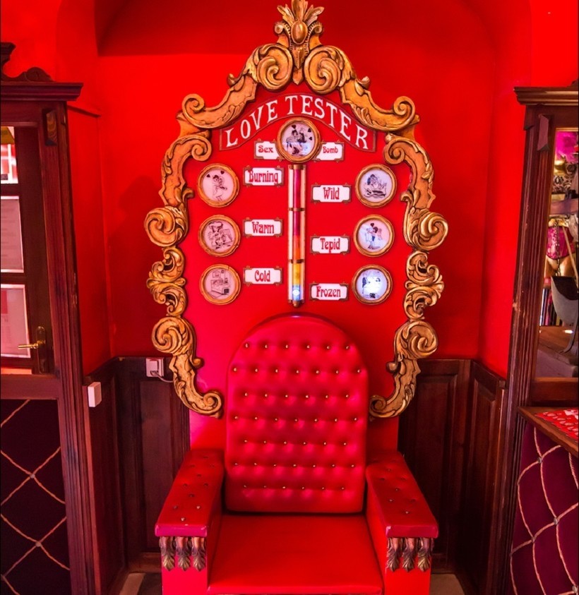 Я решила абстрагироваться от сексуальной составляющей. И начала изучать экспонаты. В самом начале музея, практически у ресепшена, стоит своеобразный детектор сексуальности, если сесть в это кресло, то оно определит тип темперамента. Весьма, кстати, любопытно. Музей изнутри выдержан в красном цвете.