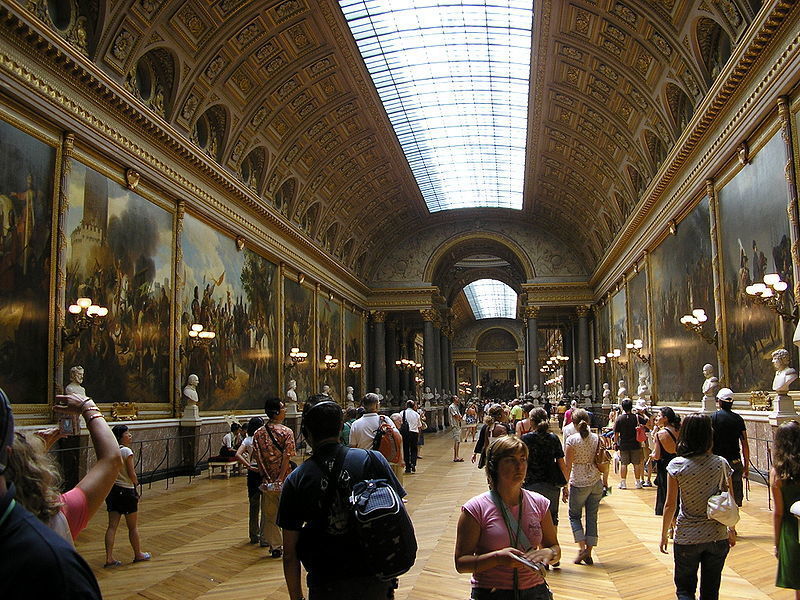 Как попасть. Саму по себе, отдельно, галерею битвы осмотреть нельзя, нужно купить билет для посещения Версальского дворца. Попасть внутрь огромного здания можно круглый год, кроме дней национальных и религиозных праздников. Понедельник в Версале всегда выходной. В остальное время дворец открыт с 8 до 17:30 в период с ноября по май и с 9 до 18:30 в прочие месяцы года. Входные билеты стоят дорого, минимум 18 евро, т.е. почти 1500 рублей в пересчете на российскую валюту. Но покупать такой «дешевый» билет не стоит, проще купить комплексный билет за 20 евро, дающий право осмотреть, помимо главного здания Версальского дворца, также дворцы Трианон, Большой и Малый.